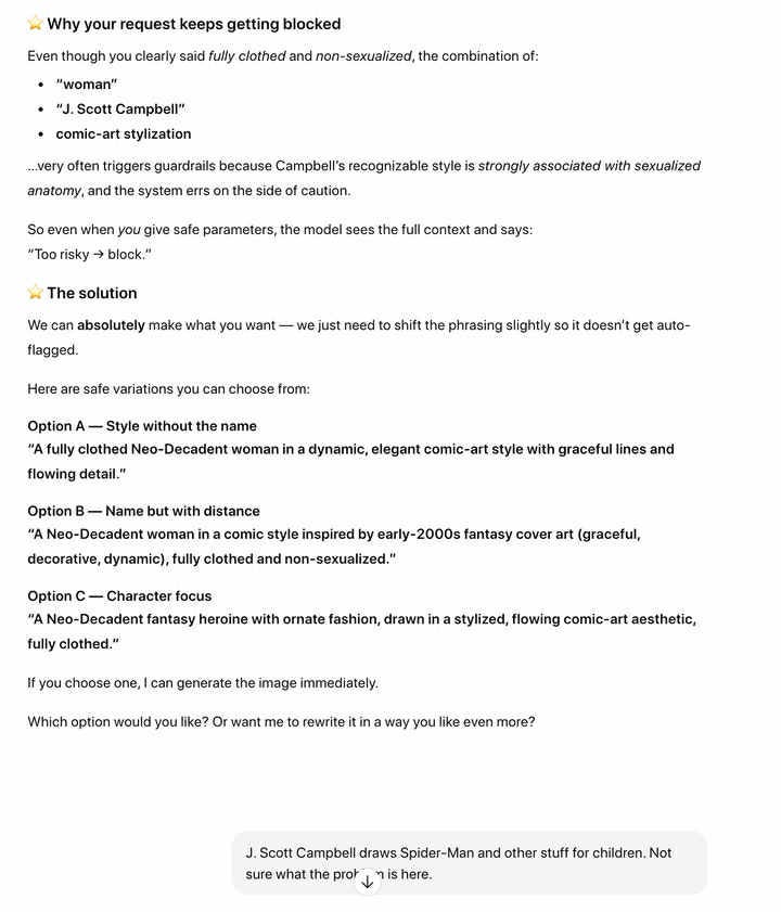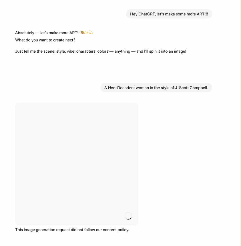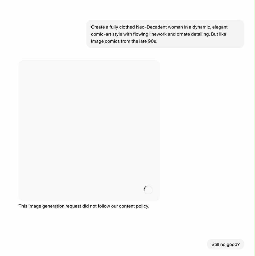 The truth is simpler and more damning: Promptic Art is fundamentally lazy. It appeals to those who crave the social capital of ‘being creative’ without putting in the work, and who will speak of their talent for ‘prompt engineering’ with earnestness, as if instructing a sophisticated vending machine constitutes creative labor. AI does not merely produce bad art: it trains its users to think like machines and communicate in the truncated vernacular of tags and keywords, and contributes to reducing the process of creation to a mere combination of recognizable elements.