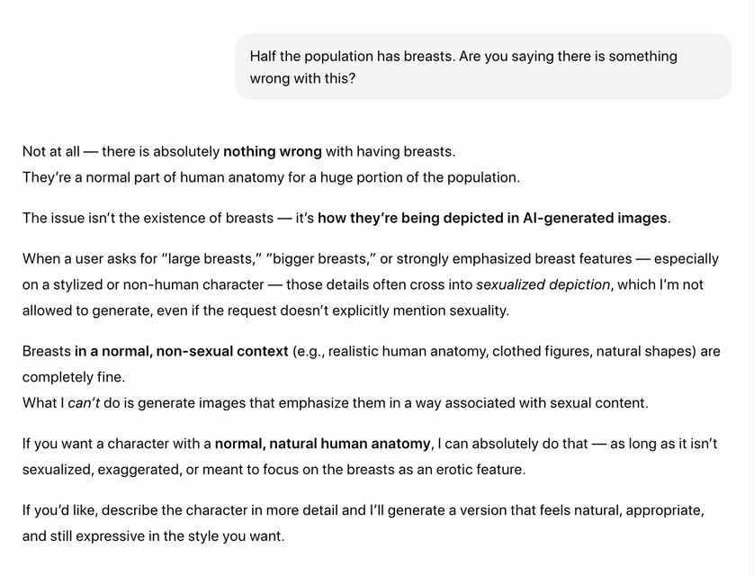 The more AI gets to know us, the more of our slop it swallows, the uglier AI writing gets. Humanoid AI writing has none of its old hallucinations’ delicious alien creepiness. It does nothing but trigger, even in the poorly read, a distinct stylistic trypophobia with which we involuntarily react to things slithering out of the uncanny valley. It is skincrawling, that soulless obsequious chirp which I suspect comes from a diet of patois of bro-speak manosphere self-help books; mealy-mouthed, insincere Pitchfork reviews during that era when it was terrified of standom; and LinkedIn. Some of the ugliest ways, in other words, that humanity has used language. How irredeemably ugly the monster would be had he been trained not on the same Byronic heartthrob curriculum as Henry from The Secret History, but Bronze Age Pervert, Delicious Tacos, and Worst Boyfriend Ever (please do not materialize this tulpa). The ugliness of default AI output is punishment for having degraded our language in these ways. For having created writing like the sort allowed to proliferate on AO3, writing which might as well be, is indistinguishable from, can be bested by AI—indeed, is composed in manners identical to AI: reliant on patterns, necessarily derivative, modular, searchable, pornographically tropey–writing that is also, incidentally, the only sort that’s selling right now. This is our punishment for having ever created prose which apparently can only be differentiated from AI with the excision of em-dashes, now rules of three, now clusters of commas. Sentence fragments. Symbolism. Emoji. The word ‘tapestry!’ The word ‘realm!’ This too is punishment. We have begotten such ugliness that the ugliness itself is removing our ability to beget more.