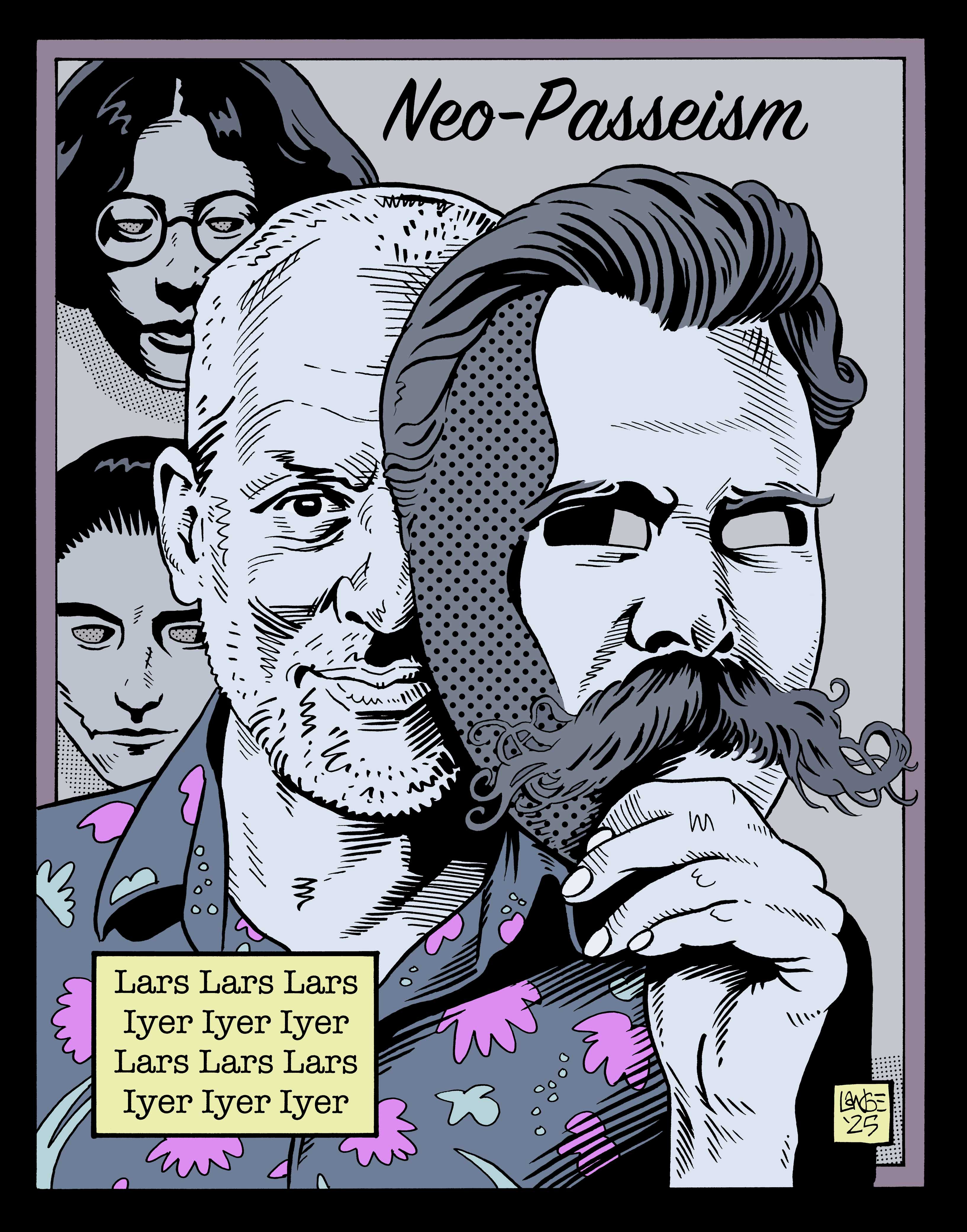 Iyer’s professor-as-Nietzschean-Last-Man pose belies his lack of core imaginative strength and, ultimately, lack of personal responsibility in generating a new artistic Current. There is no chance of any young person being inspired to action by his manifesto, which is saturated in the kind of gurning pessimism characteristic of those who grade papers for a living instead of inhabiting the vital artistic spaces of the present. Iyer mistakes his own anomic irrelevance for that of Literature’s, with results that are ultimately less comic than terminally wack.